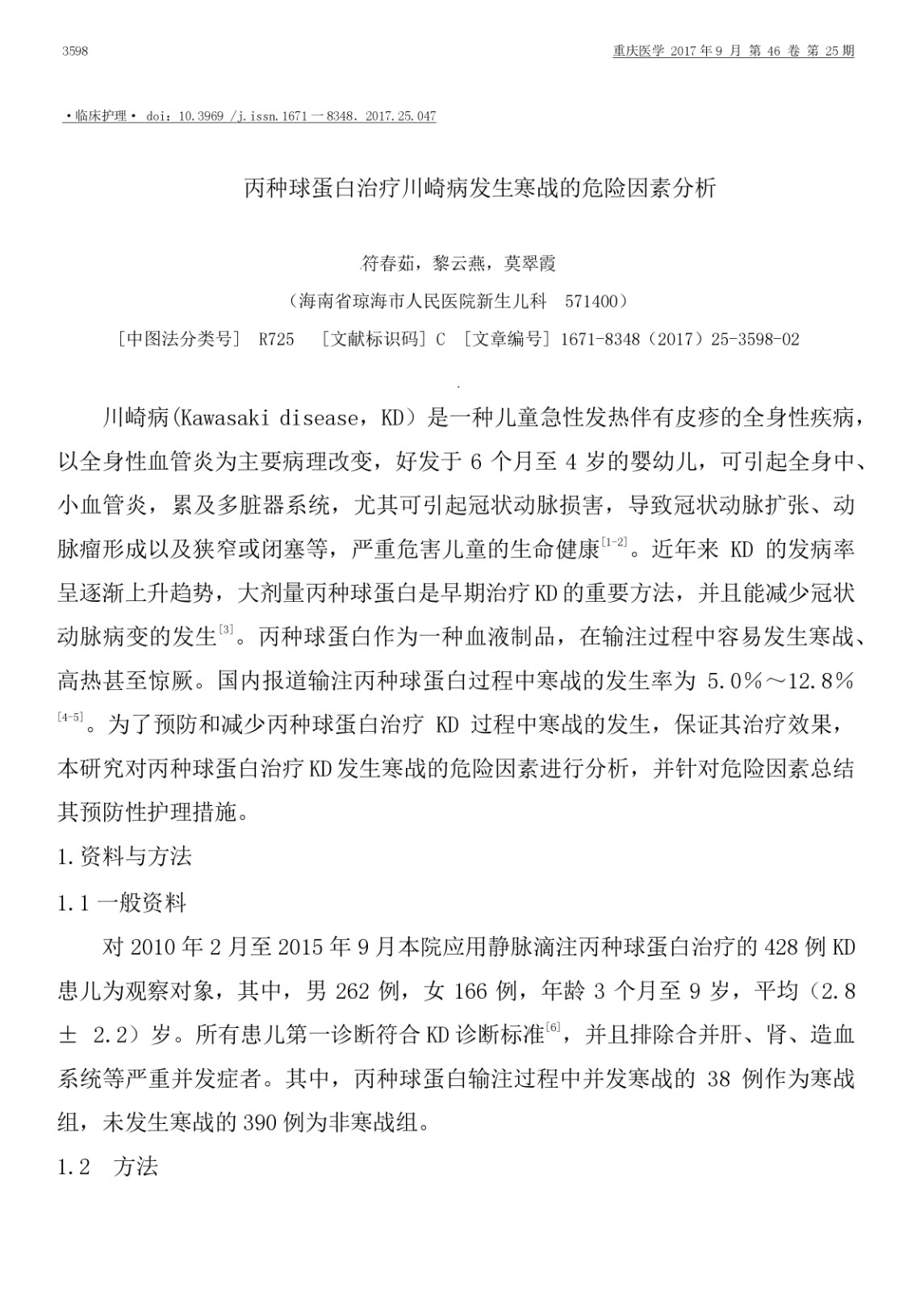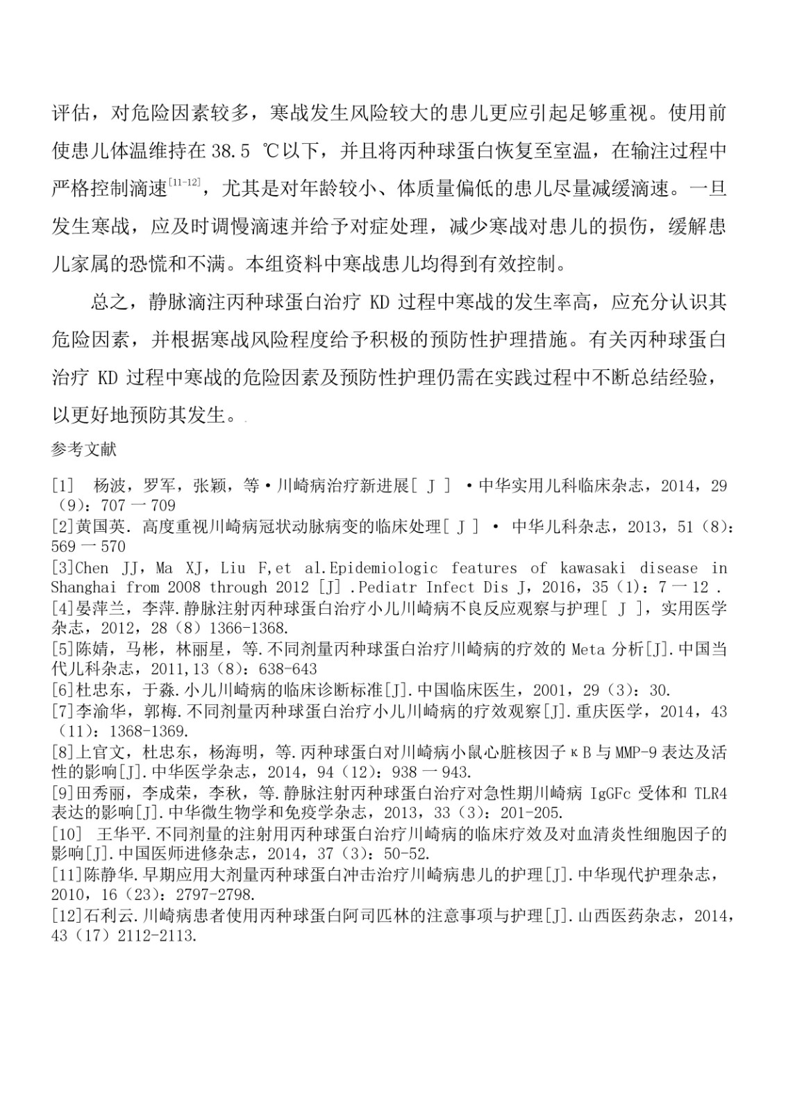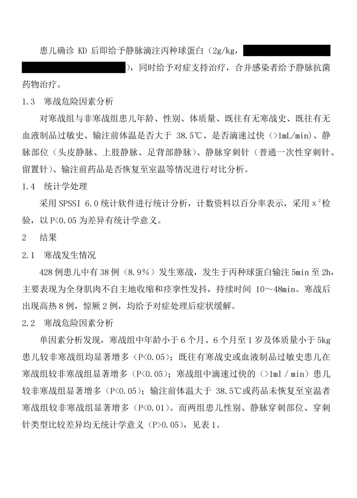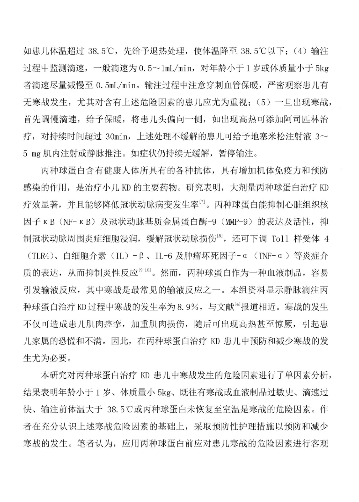丙種球蛋白治療川崎病發(fā)生寒戰(zhàn)的危險因素分析